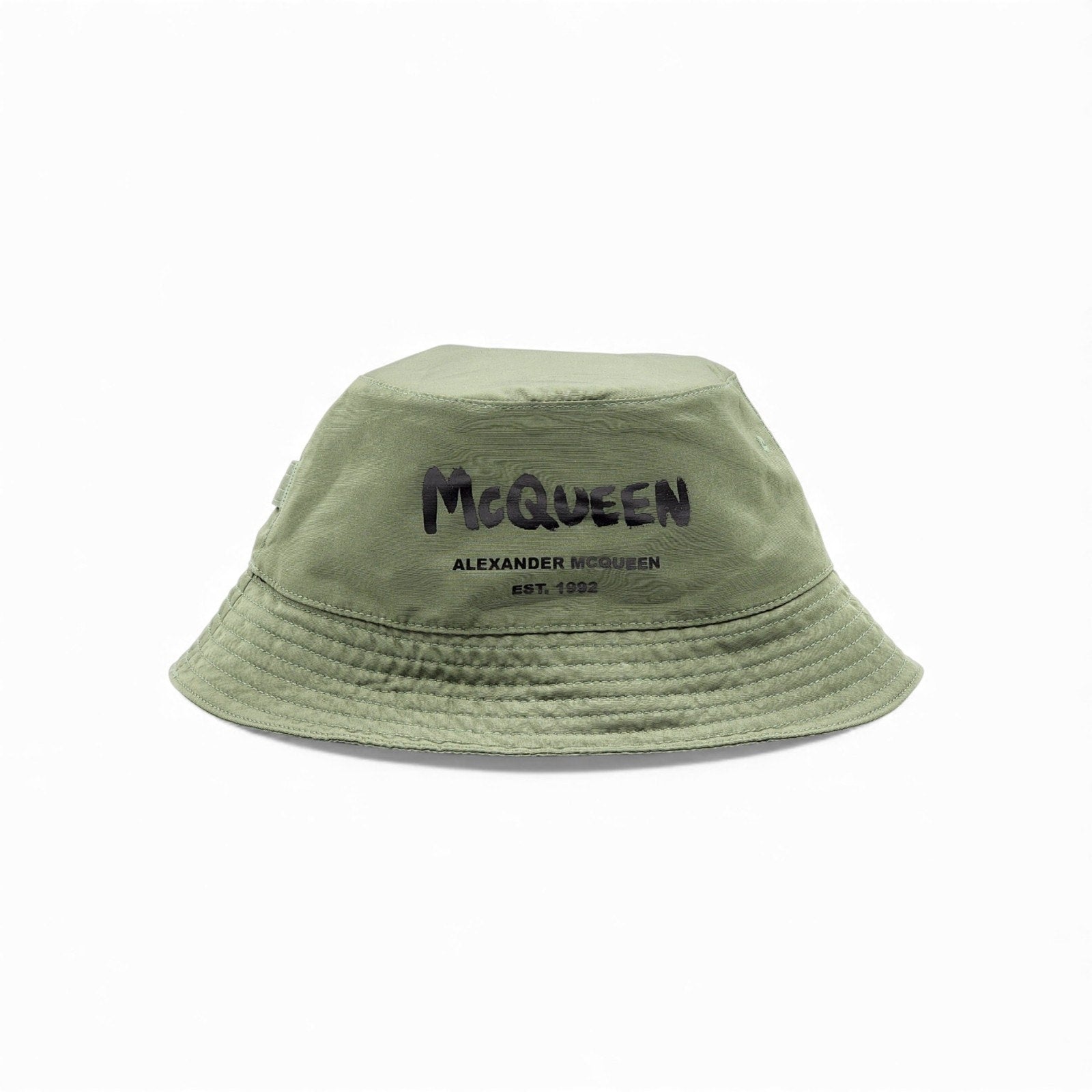 This Alexander McQueen graffiti bucket hat delivers a bold, contemporary look with the brand’s signature edge. Crafted in green with contrasting graffiti-style branding, it offers a modern statement piece that pairs effortlessly with both streetwear and elevated casual looks. The structured yet lightweight design provides comfort while maintaining a sharp silhouette.
