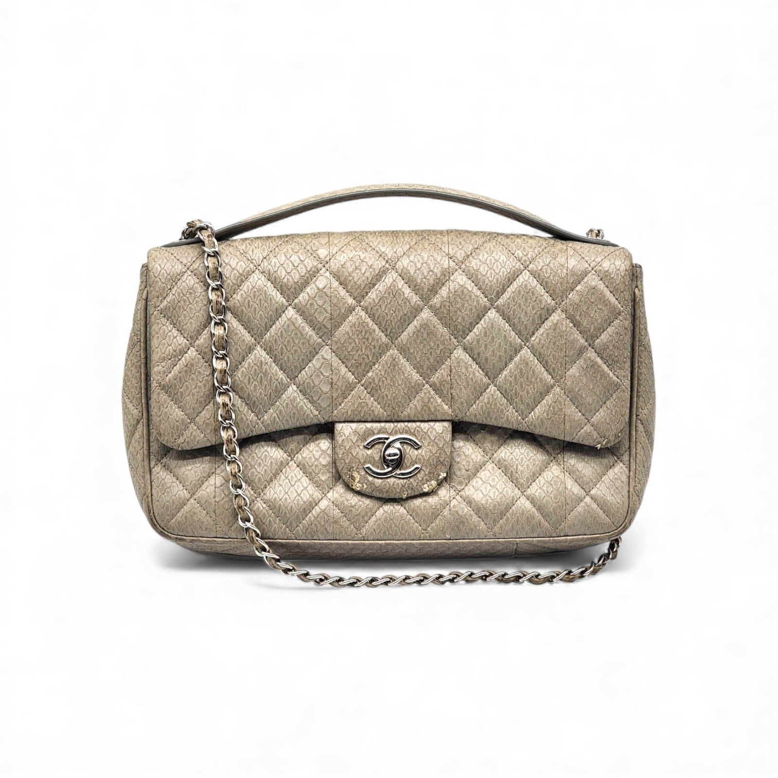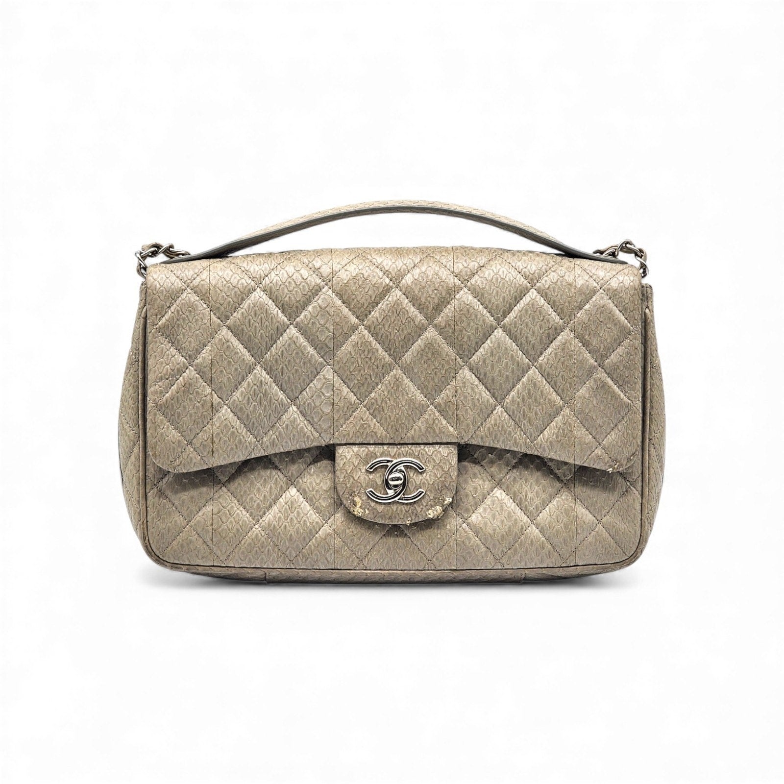 Chanel Python Easy Carry Medium Classic Flap Bag with Top Handle – Beige / Silver Hardware