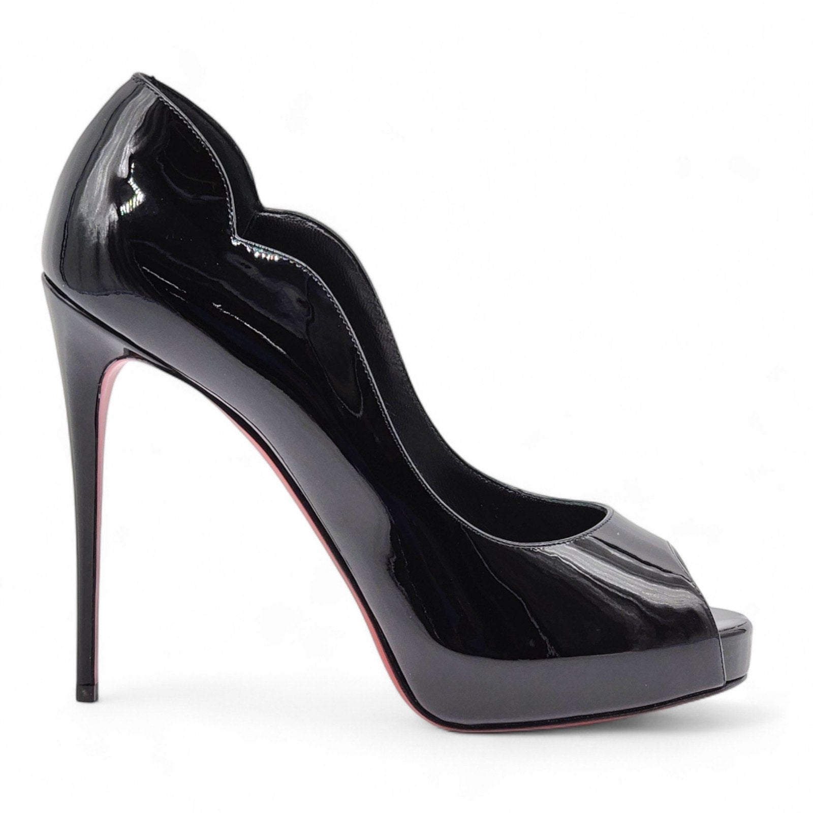 Step into iconic Christian Louboutin style with the Hot Chick Open Toe Pumps. A twist on the classic silhouette, this version features a seductive open toe, signature curves, and a dramatic 120mm stiletto heel, all wrapped in glossy black patent leather. A standout piece that brings elegance and edge to any wardrobe.