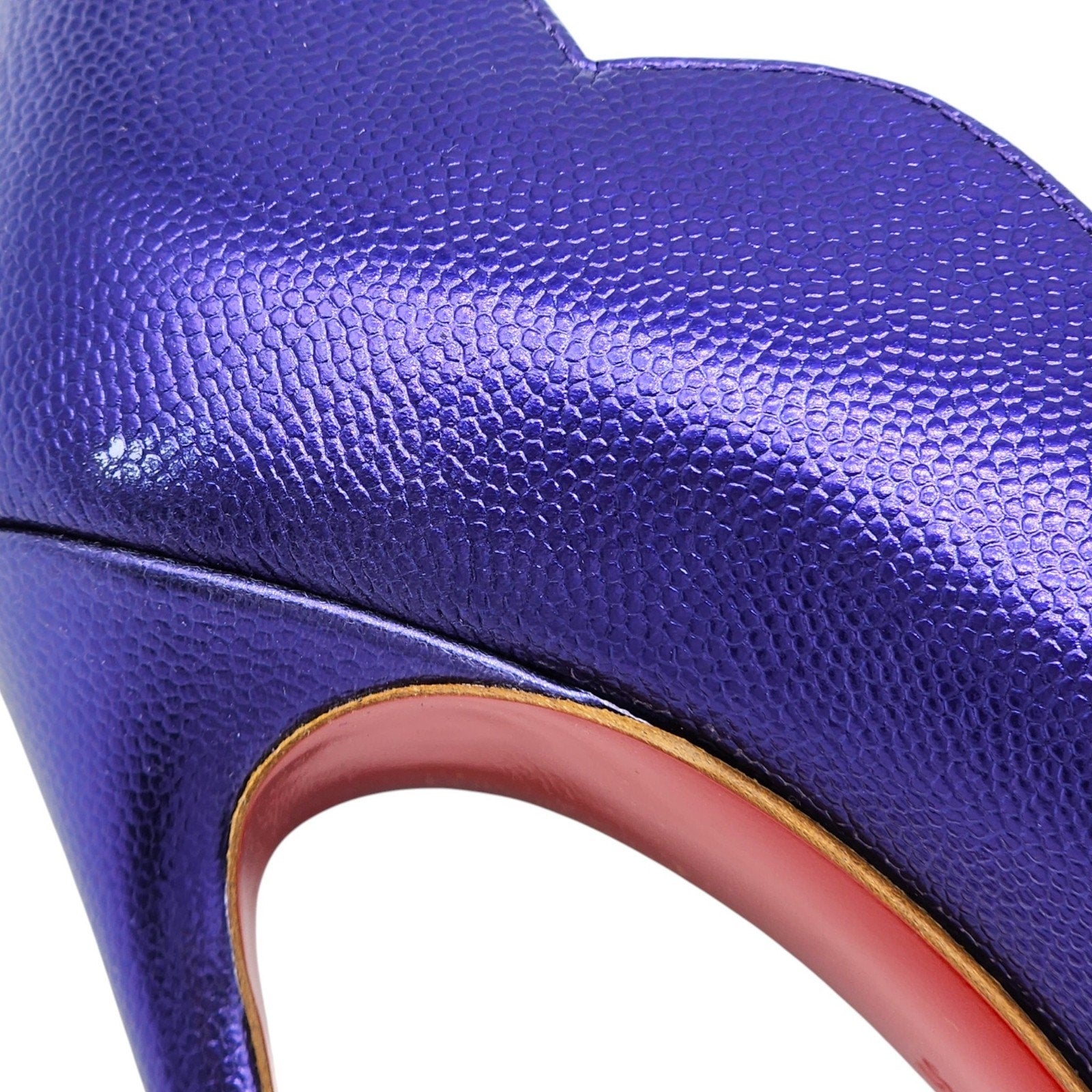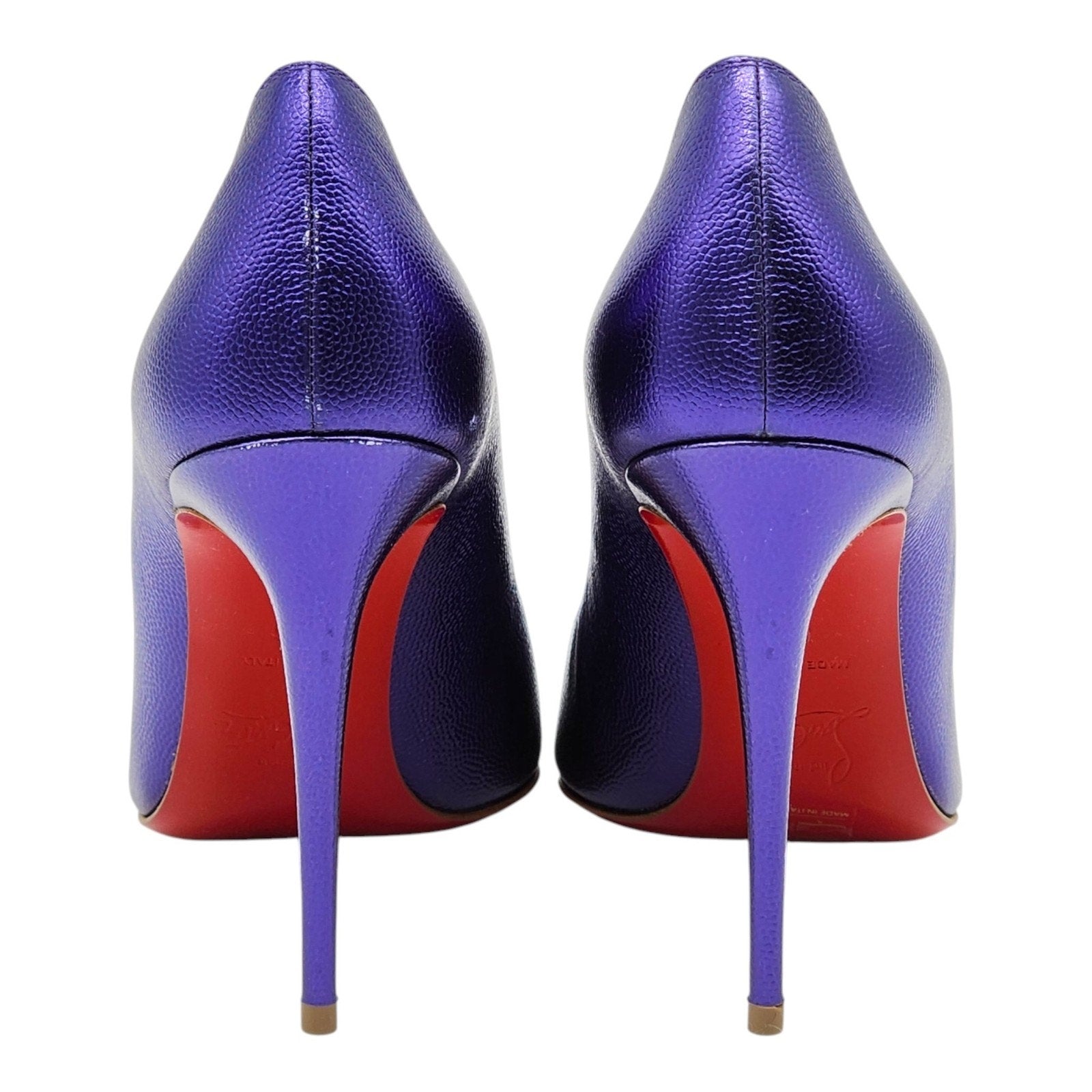 Make a bold statement with these iconic Christian Louboutin Hot Chick 100 pumps. Crafted in striking metallic purple leather, they feature the signature scalloped topline, pointed toe, sleek stiletto heel, and the brand’s famous red-lacquered soles. Designed to turn heads, these pumps elevate any outfit from eveningwear to high-fashion looks.