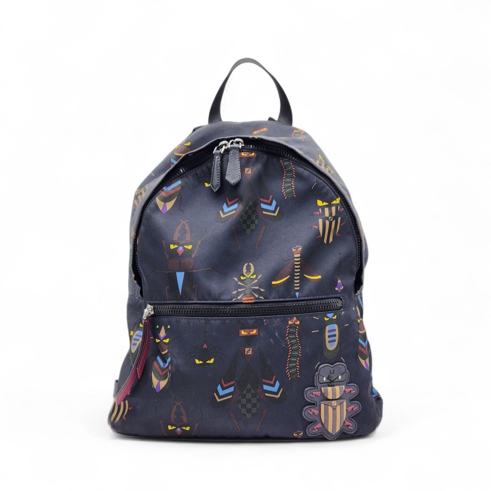 Fendi Monster Bug Eyes Backpack – Black Nylon with Multicolor Print – Made in Italy