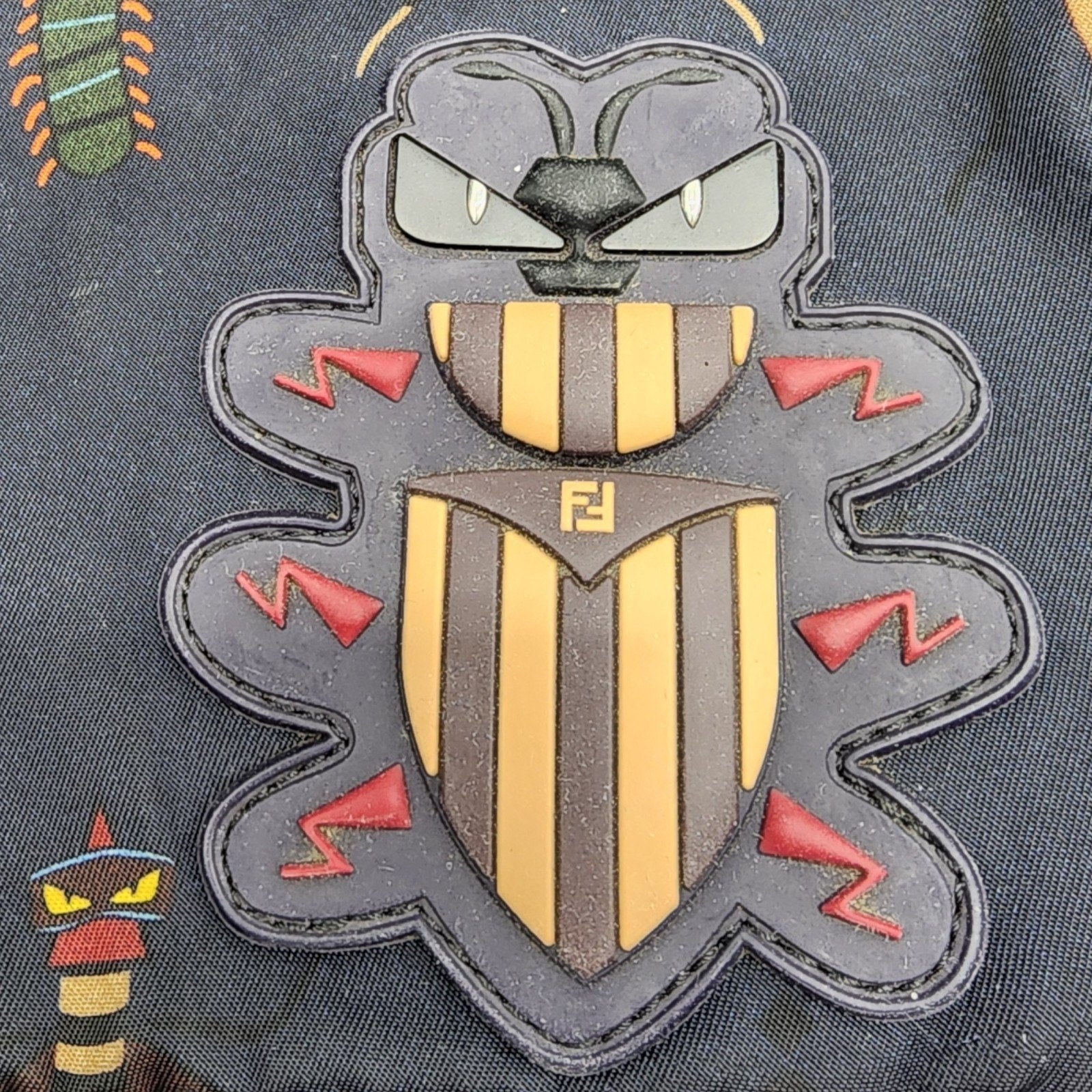 Bring bold personality to your everyday style with this authentic Fendi Monster Bug Eyes Backpack, crafted in Italy from durable black nylon with leather details. The design showcases Fendi’s iconic playful monster motif in a vibrant multicolor print, paired with a detachable rubber bug patch for added edge. Functional yet stylish, it features a roomy main compartment with zip closure, a front zip pocket for essentials, and adjustable padded shoulder straps for comfort.