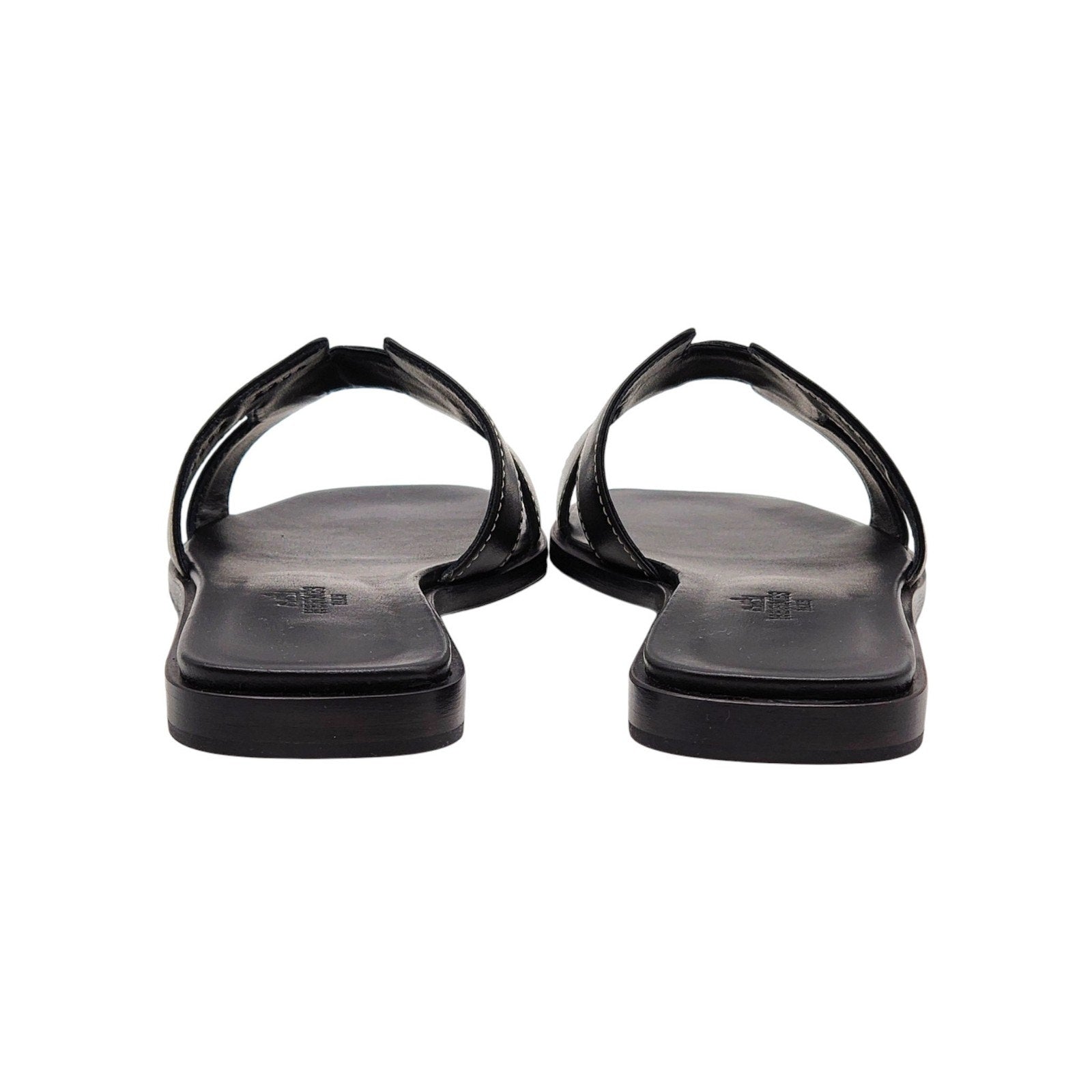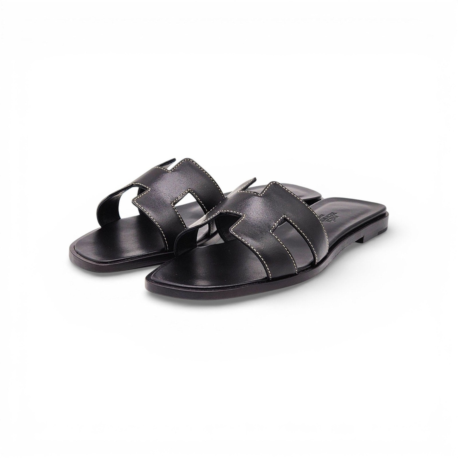 Hermes Oran Womens Black Leather Slide Sandals EU 36 US 5.5