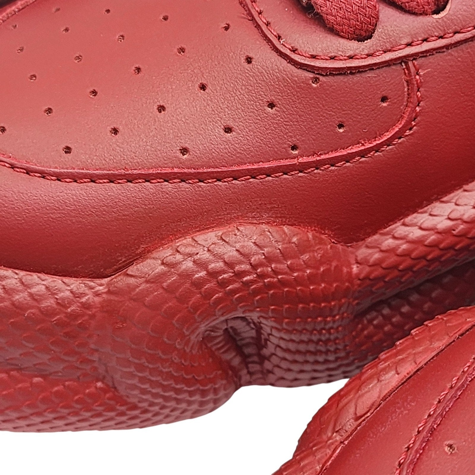 A bold and highly collectible release from the Giuseppe Zanotti x Young Thug collaboration, these Cobras sneakers feature a striking red leather upper paired with the signature sculpted “Cobras” rubber outsole. The design reflects Zanotti’s unmistakable craftsmanship combined with Young Thug’s avant-garde influence, resulting in a statement sneaker with strong visual impact and premium construction.