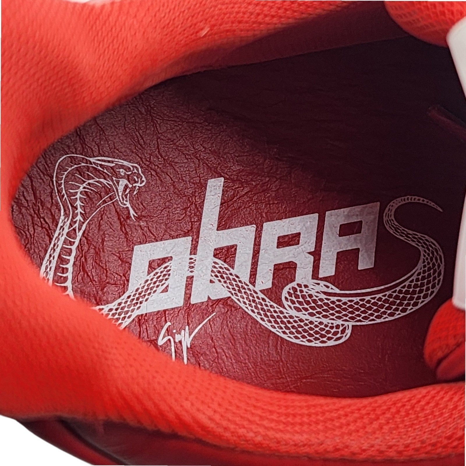 A bold and highly collectible release from the Giuseppe Zanotti x Young Thug collaboration, these Cobras sneakers feature a striking red leather upper paired with the signature sculpted “Cobras” rubber outsole. The design reflects Zanotti’s unmistakable craftsmanship combined with Young Thug’s avant-garde influence, resulting in a statement sneaker with strong visual impact and premium construction.