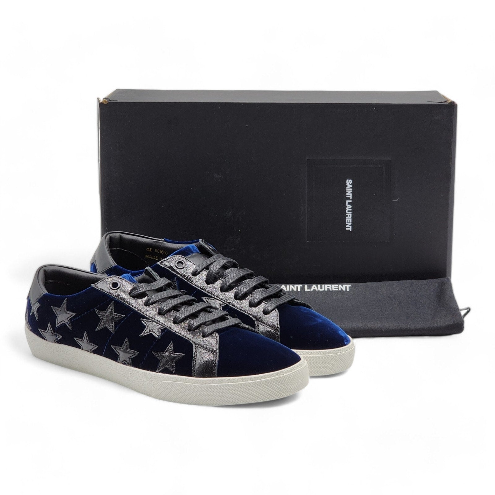 Saint Laurent Court Stars Velvet Sneakers 501610 Blue EU 41 US 8