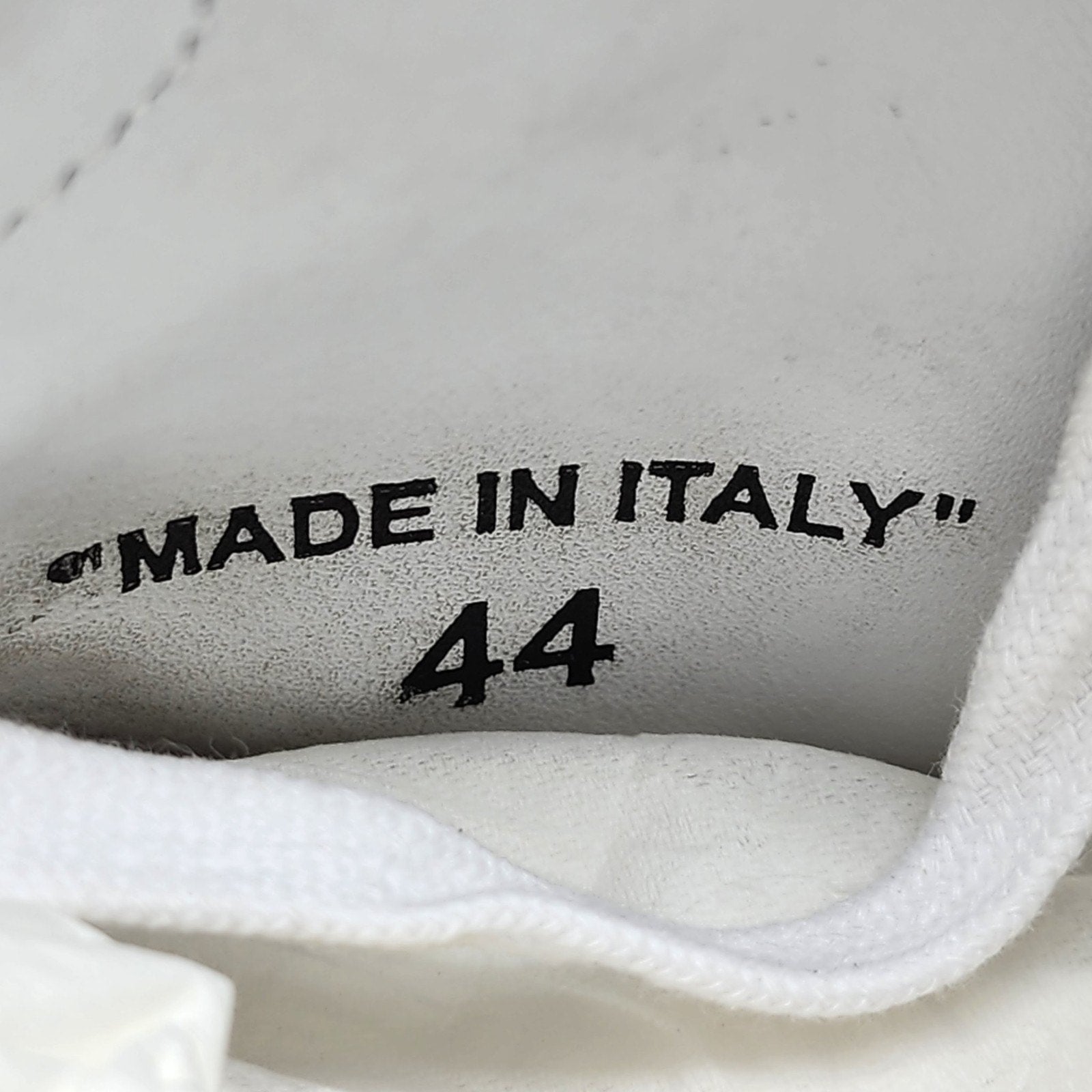Step into iconic streetwear design with these Off-White Off-Court high-top sneakers. Crafted in Italy, this statement pair blends premium materials with Virgil Abloh’s signature industrial aesthetic, making it a standout choice for modern, fashion-forward wardrobes.