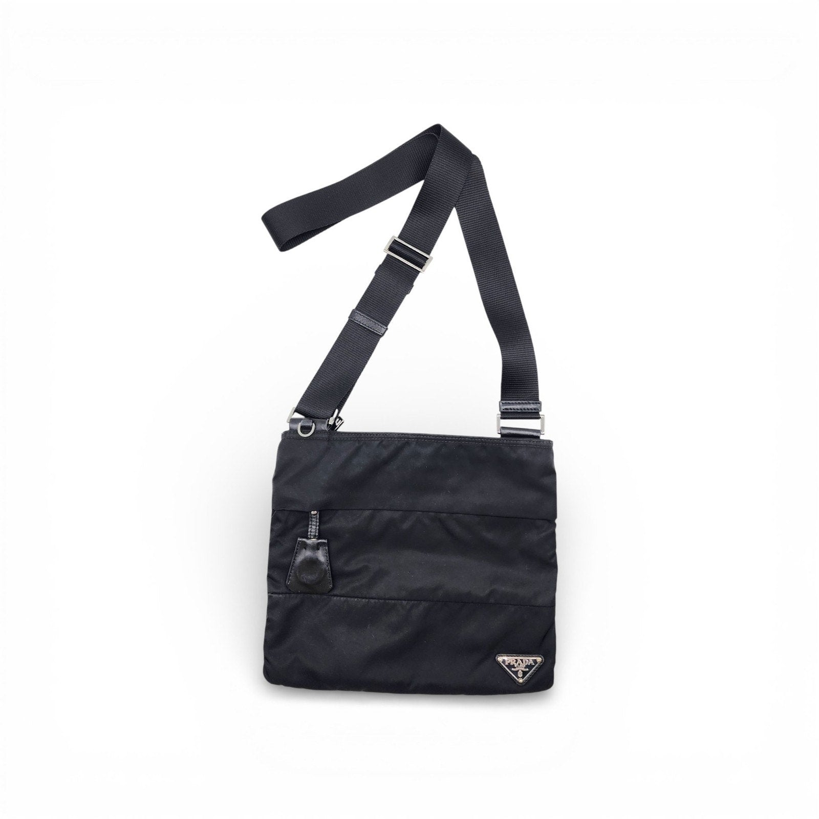 Prada Unisex Triangle Logo Nylon and Leather Crossbody Shoulder Bag Black